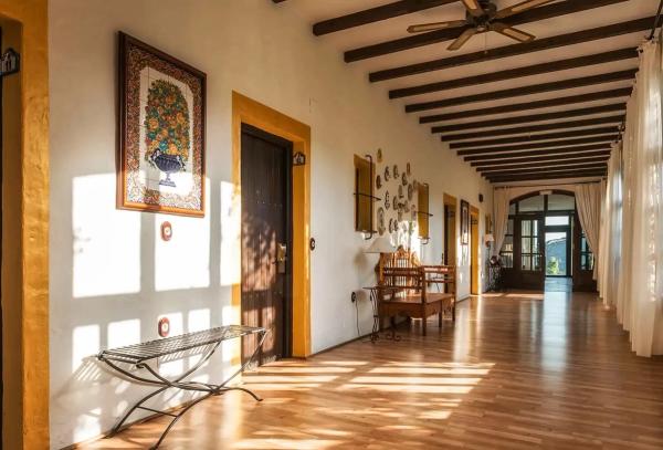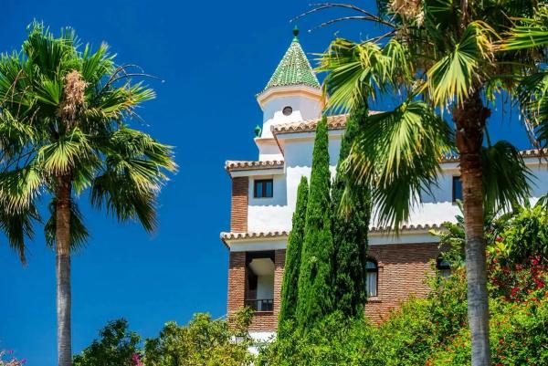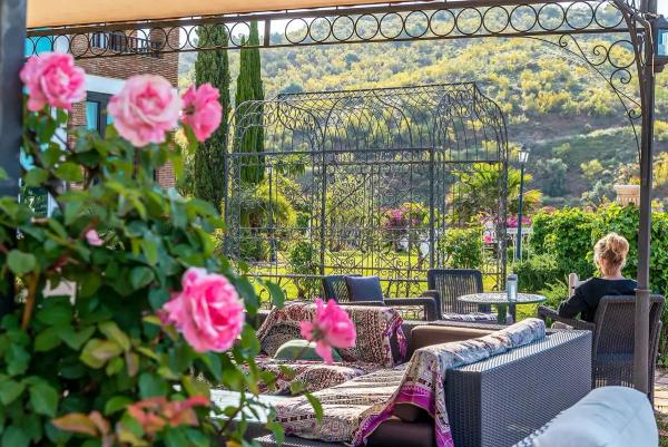 Centro Santillán is a beautifully restored Andalusian farmhouse set within 50,000 square metres of secluded gardens overlooking the sea, just 20 minutes from Málaga Airport. The grounds are generous and unhurried: saltwater pool, pine gardens, hiking trails, and open terraces where the afternoons stretch out quietly in the southern light.