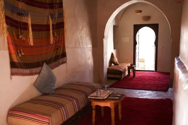 The twenty rooms are built and furnished in the traditional Berber style, with warm terracotta walls, handcrafted details, and the kind of quiet that only thick walls and thoughtful design can produce. Many have their own private outdoor space, a garden, a terrace, or a courtyard where you can sit undisturbed.